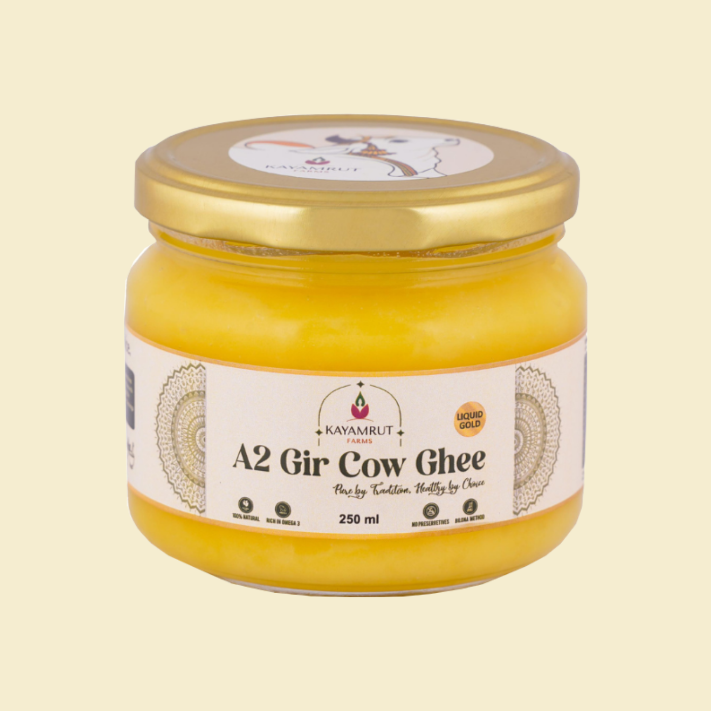 Pure A2 Ghee crafted the traditional Bilona way.